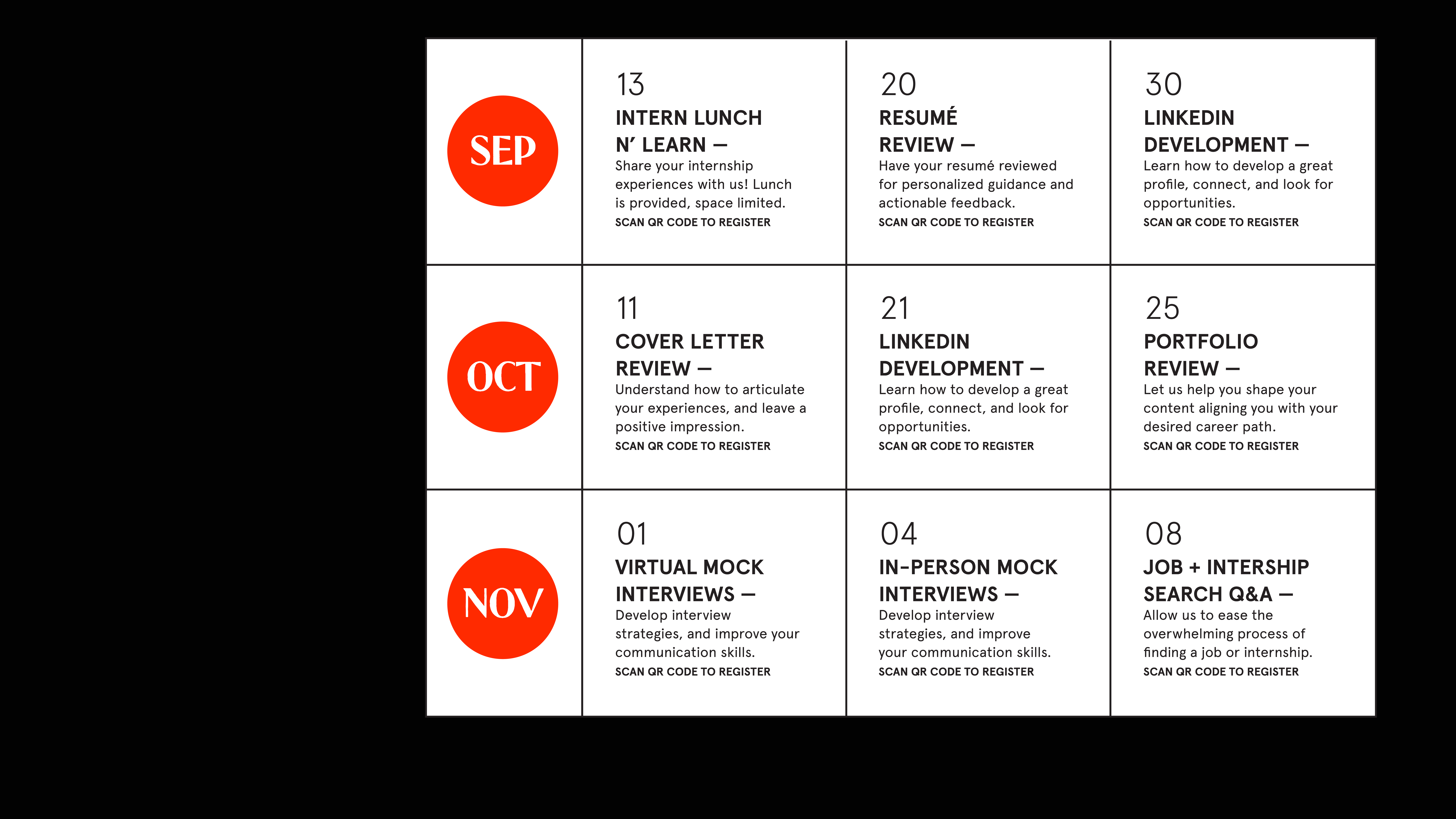 Working for the College of Design and Architecture at Auburn University, I created this 6in x 4in flier for upcoming career services events.